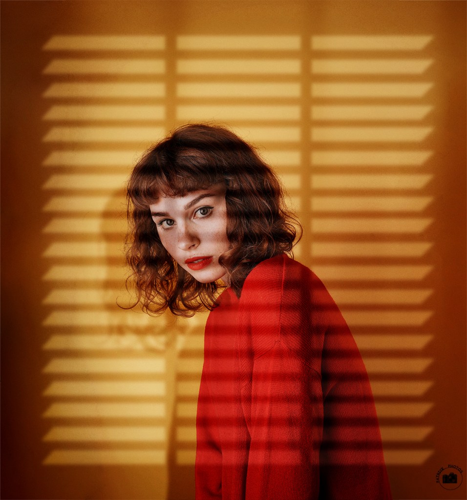 Un bien joli portrait à travers les ombres des persiennes.