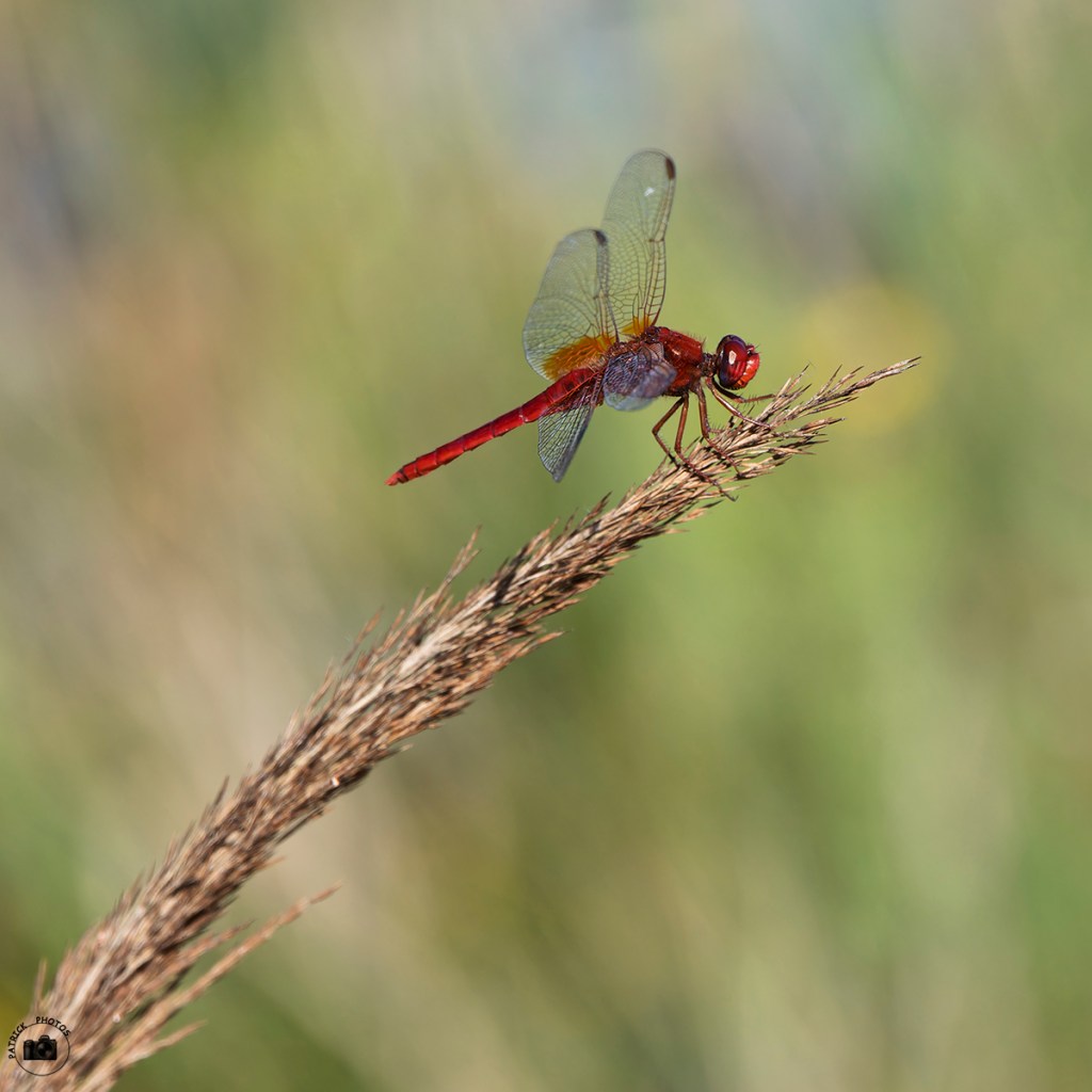Superbe mâle Sympatrum sanguineum (sympetrum sanguin) et belle compo en diagonale. Bisous.